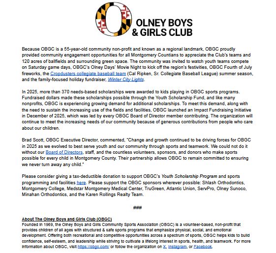 Did you hear? OBGC’s 2025 milestones include inking an apparel deal with Under Armour, achieving record enrollment in our programs, forging a merger with SSAA, gaining access to an indoor facility for baseball and softball training, and much more!