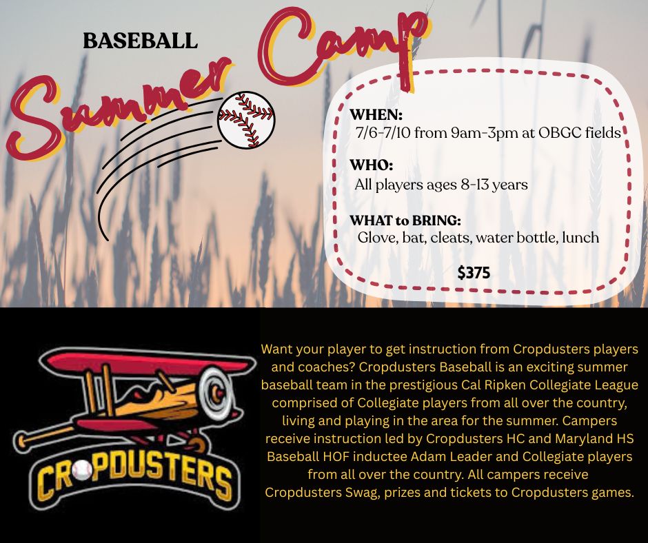 Concessions at OBGC Park will be open for purchasing meals, snacks and drinks before 1pm for camps that take place at the Park only.