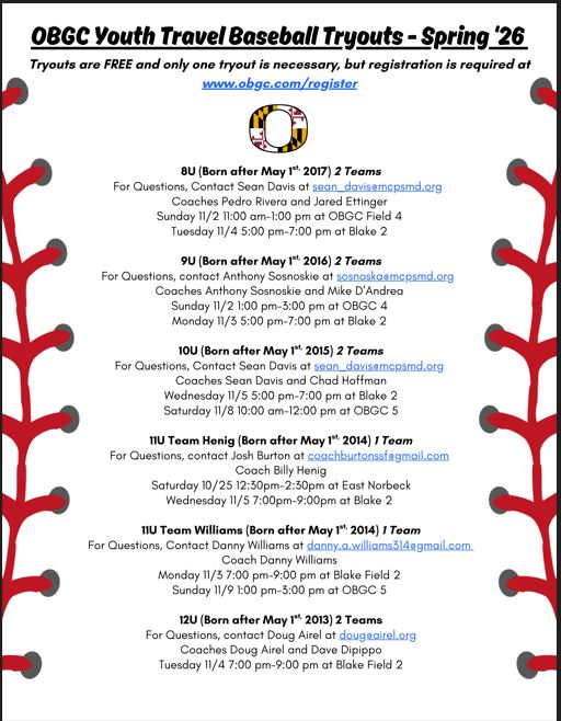 Please see flyer for details on the various age groups and correlating tryout dates. Coaches are listed so feel free to contact them directly with questions about the team or season.